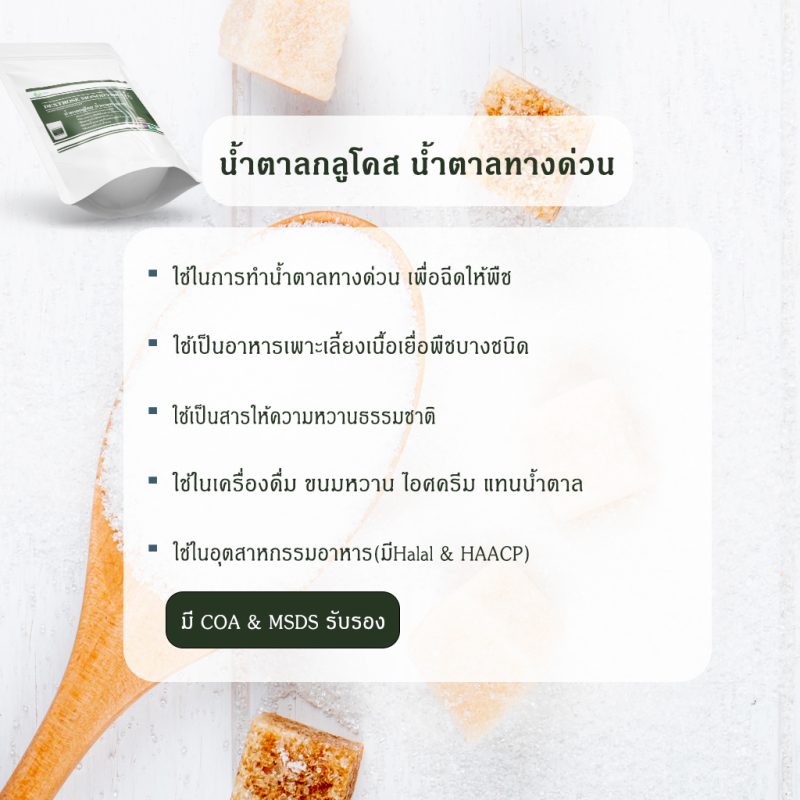 น้ำตาลกลูโคส (Dextrose Monohydrate) เป็นน้ำตาลที่มีคุณสมบัติให้พลังงานอย่างรวดเร็วและปลอดภัยสำหรับการใช้งานในอุตสาหกรรมอาหารและการแพทย์ มีบทบาทสำคัญในการช่วยเพิ่มพลังงานให้ร่างกาย และสามารถใช้เป็นส่วนประกอบในอาหารเพื่อปรับรสชาติและเพิ่มคุณค่าทางโภชนาการ