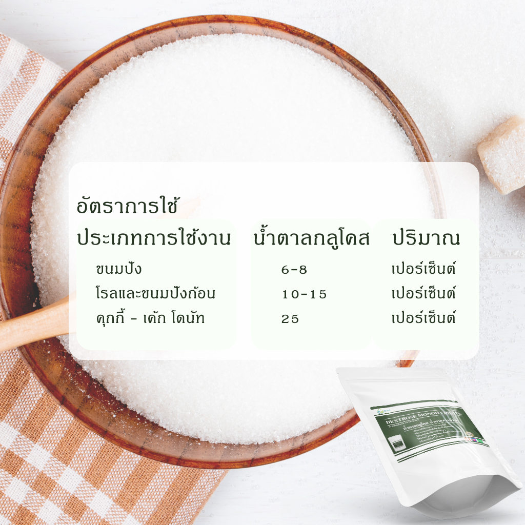 น้ำตาลกลูโคส (Dextrose Monohydrate) เป็นน้ำตาลที่มีคุณสมบัติให้พลังงานอย่างรวดเร็วและปลอดภัยสำหรับการใช้งานในอุตสาหกรรมอาหารและการแพทย์ มีบทบาทสำคัญในการช่วยเพิ่มพลังงานให้ร่างกาย และสามารถใช้เป็นส่วนประกอบในอาหารเพื่อปรับรสชาติและเพิ่มคุณค่าทางโภชนาการ